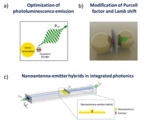 Notably, plasmonic nanoantennas can serve as a versatile platform for controlling the efficiency of light emission and the optical properties of single emitters (such as organic molecules, quantum dots, or nitrogen-vacancy centers in nanocrystals) by modifying their electromagnetic environment.