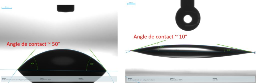 - des propriétés de surface (avec l’appareil d’angle de contact également appelé Goniomètre)