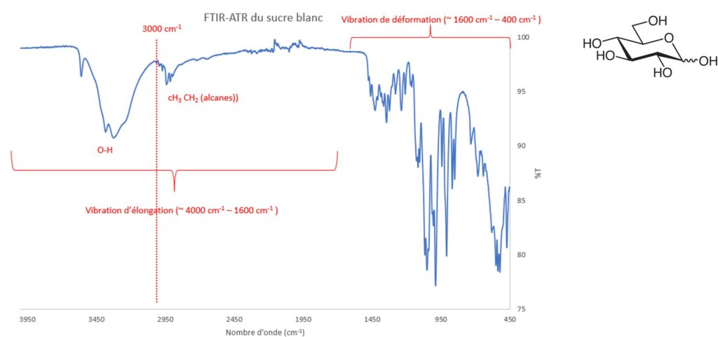 - d’identification des groupes caractéristiques de molécules (avec le spectromètre infrarouge à transformée de Fourier avec module de réflectance totale atténuée FTIR-ATR)